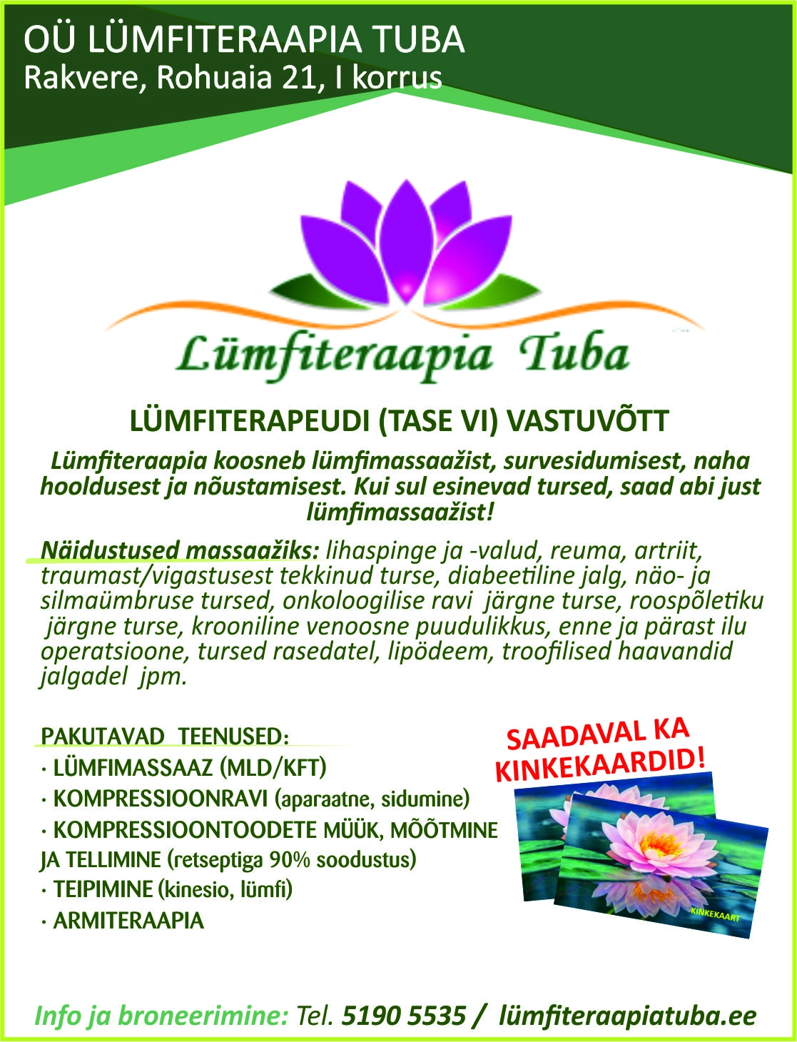 Tervis ja heaolu on tänapäeva kiire elutempo juures aina olulisemad ning üks võimalus saavutada tasakaal kehas ja vaimus on lümfimassaaž. LÜMFITERAAPIA TUBA OÜ pakub mitmekülgset valikut teenuseid, mis on suunatud tursete ravile, stressi leevendamisele ja üldise heaolu parandamisele.